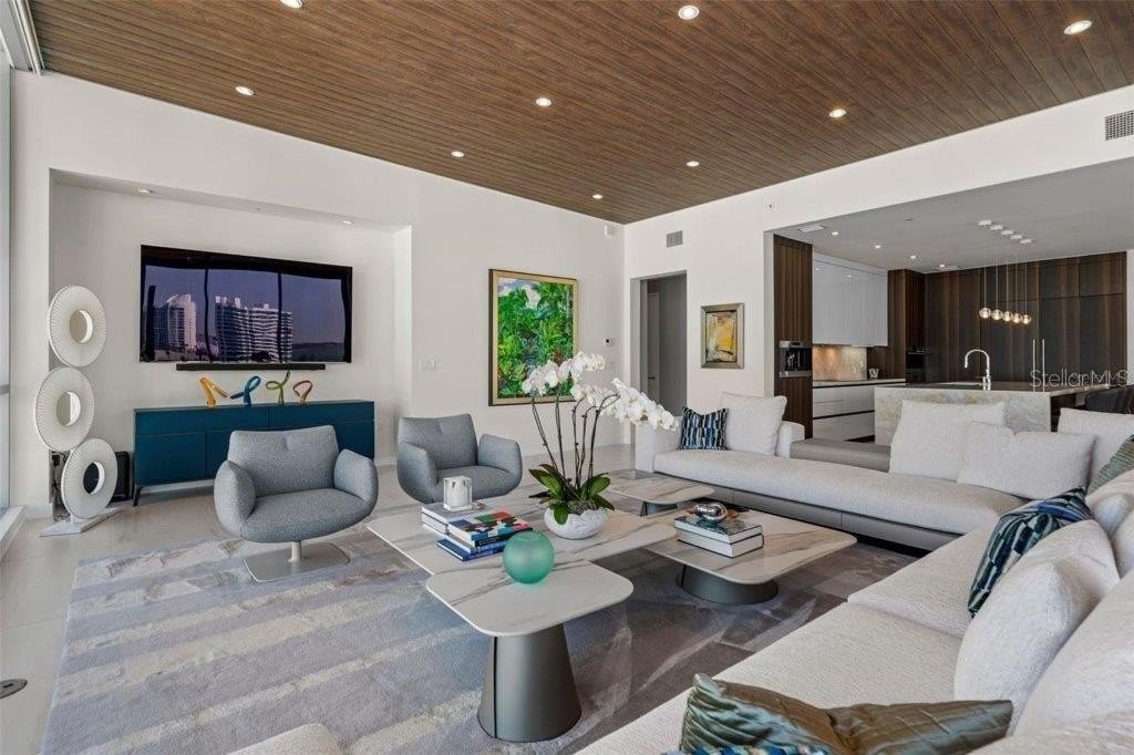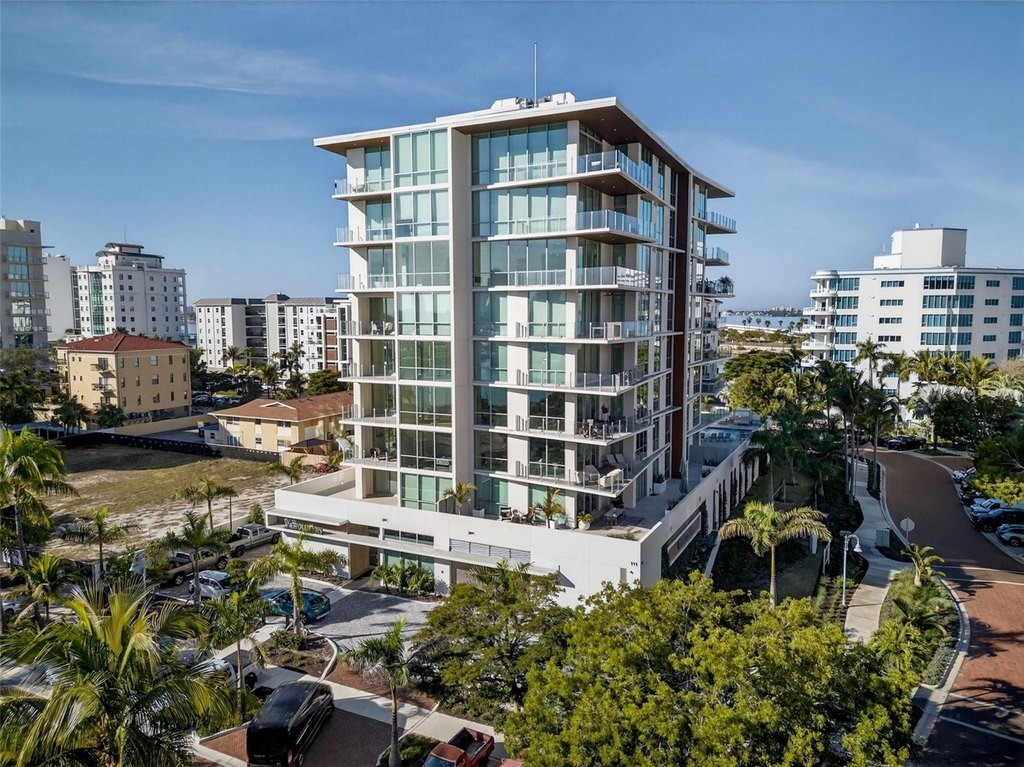 Offered at $5, 995, 000 over $1, 250, 000 below what the sellers have into this UNMATCHED VALUE penthouse at The Evolution is downtown Sarasota's most exclusive high-rise opportunity - and is just steps away from dining and downtown living. This one-of-a-kind, TOP-FLOOR PENTHOUSE spans 3, 527 SQ FT of interior living plus 562 SQ FT of wraparound TERRACE SPACE across THREE generous balconies for endless possibilities of indoor/ outdoor living. Offering FOUR BEDROOMS plus a DEN and 4.5 BATHS, this residence provides the comfort of a single family home with the elegance of HIGH-RISE LIVING. Sweeping NORTH, EAST, and SOUTH WATER VIEWS showcase SARASOTA BAY, the GULF, MARINA, and the CITY SKYLINE. FLOOR-TO-CEILING WINDOWS fill the home with natural light and allow year-round coastal breezes, and designer LUTRON ELECTRONIC SHADES grace each window, allowing privacy with ease. Interior features include ONYX QUARTZ COUNTERTOPS, PORCELAIN TILE SLABS, oversized PORCELAIN FLOORING, DESIGNER LIGHT FIXTURES, and CUSTOM EUROPEAN CABINETRY in the kitchen, baths, and closets. The PRIMARY SUITE features SILK WALLPAPER, and a SPA-INSPIRED BATH with dual sinks, a freestanding soaking tub, and onyx quartz and porcelain slab finishes. The CHEF'S KITCHEN includes WOLF APPLIANCES, sub-zero fridge-freezer with filtered water feature, induction cooktop, steam over, built-in coffee station, a wine refrigerator, and a HIDDEN WALK-IN PANTRY. Imported European fixtures complete the space. Enjoy THREE WRAPAROUND TERRACES for ALFRESCO DINING, YOGA, or SUNSET COCKTAILS. The unit includes a DEEDED PRIVATE TWO-CAR GARAGE and is MOVE-IN READY with every upgrade imaginable. Community amenities at THE EVOLUTION include a POOL WITH OUTDOOR KITCHEN, FITNESS CENTER, YOGA ROOM, SAUNA, CLUB ROOM, and a ROOFTOP TERRACE with PANORAMIC VIEWS, OUTDOOR LOUNGE, SPA, and FIREPLACE. Experience the pinnacle of WATERFRONT LUXURY in DOWNTOWN SARASOTA's largest and most exclusive penthouse residence at THE EVOLUTION, a boutique community designed by architect MARK SULTANA, DSDG. With only 20 RESIDENCES, this is a rare opportunity to own one of Sarasota's most exclusive penthouses. Schedule you private tour today and experience the ultimate in penthouse living. Square footage developer plans. Buyer to verify dimensions. Golden Gate Point improvement and maintenance built into taxes.
